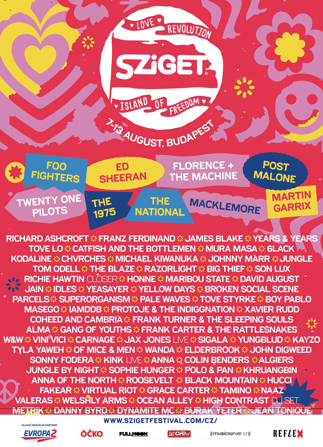 Když vyrazíte na festival Sziget, je to jako byste navštívili několik festivalů najednou. Sedmidenní akce od 7. do 13. srpna nabízí přes dva a půl tisíce koncertů, divadel a dalších akcí. Program poprvé historii také nabízí devět headlinerů. K největším hvězdám festivalu uprostřed Budapešti patří Ed Sheeran, Foo Fighters, Post Malone, Macklemore, Twenty One Pilots, Florence + The Machine, The 1975, Martin Garrix, The National a mnoho dalších!