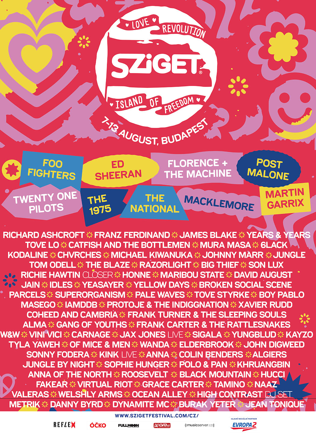 A přesně takový je Sziget. Barevný nejen uměleckou výzdobou areálu, ale zejména pak pestrostí své hudební nabídky. Již zmiňovaní Foo Fighters doplní alternativně rockoví The National, popové scéně kraluje Ed Sheeran, Florence and The Machine, The 1975 a Twenty One Pilots. Martin Garrix je hvězdným zástupcem taneční hudby, jména rapperů Post Malone a Macklemore pak bezpochyby potěší všechny fanoušky hip hopu. Sečteno, podtrženo, sedm dní přinese devět headlinerů.